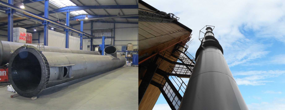 Poza konstrukcjami wykonujemy także kominy wolnostojące, do których oprócz odpowiednich powłok lakieru są również wykorzystywane stale nierdzewne.